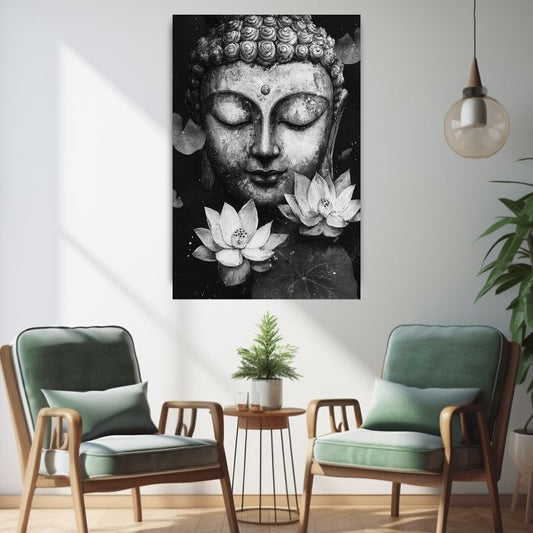 Buddha Wandbild Schwarz-Weiß