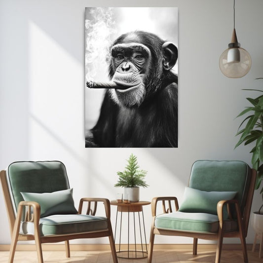 Affe mit Zigarre Wandbild Schwarz-Weiß